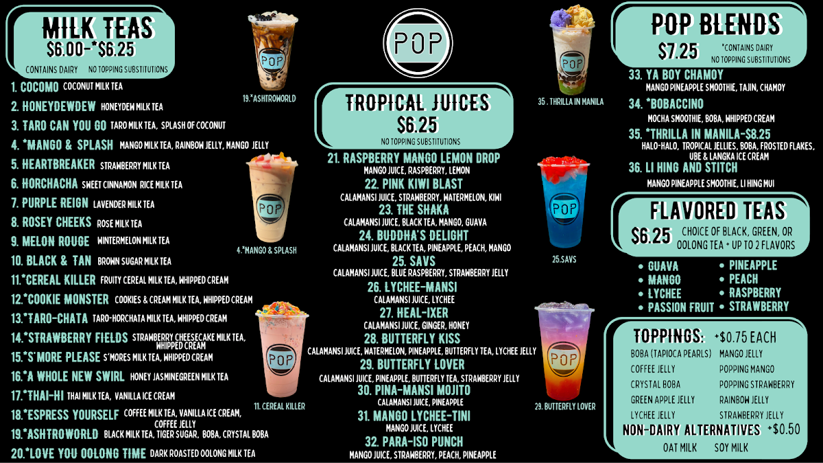 If you’re craving something fun, colorful, and a little bit indulgent, the Pop Boba Menu inside Starbread Bakery in Tracy is worth checking out. Tucked into a cozy corner at 563 W Clover Rd, it brings a playful twist to classic boba drinks, and the variety makes it easy to find a new favorite each time you stop by. You’ll notice how the drinks balance sweetness with bold flavors, whether you’re into fruit teas, creamy blends, or those popping boba pearls that burst with every sip.